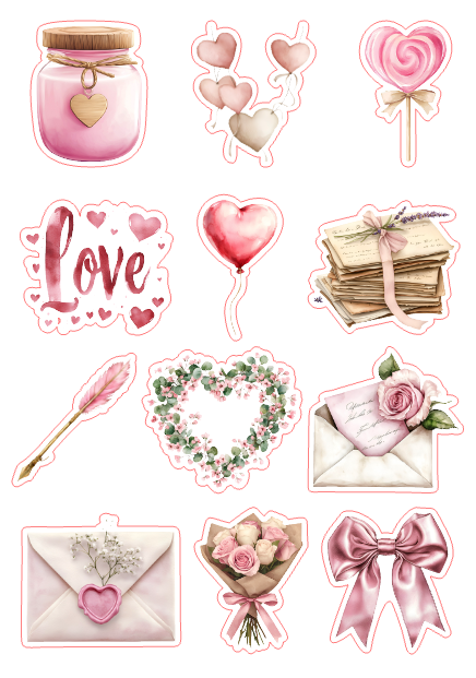 24pcs Valentine love Journaling Stickers