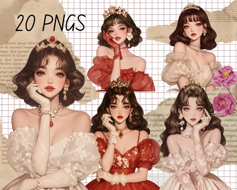 12pcs red aesthetic girls Journaling Stickers