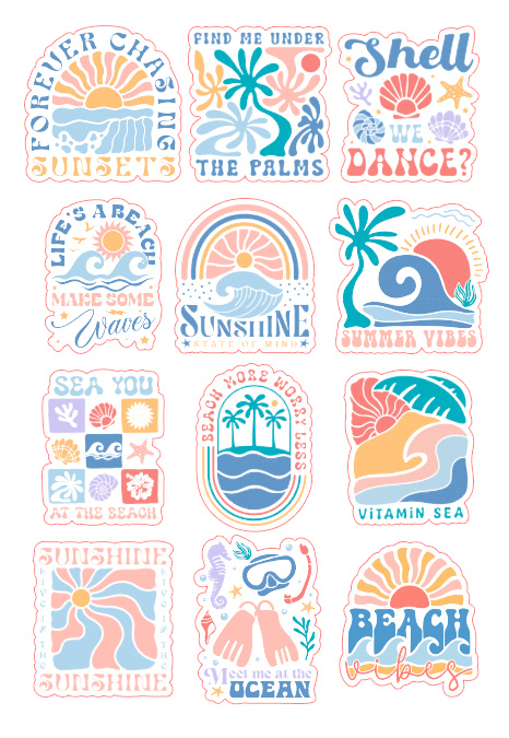12pcs beach boho Journaling Stickers