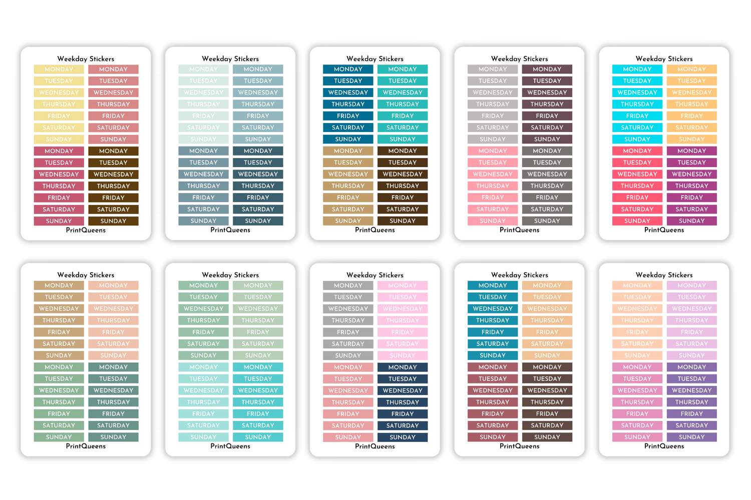 10pcs weekday Journaling Stickers