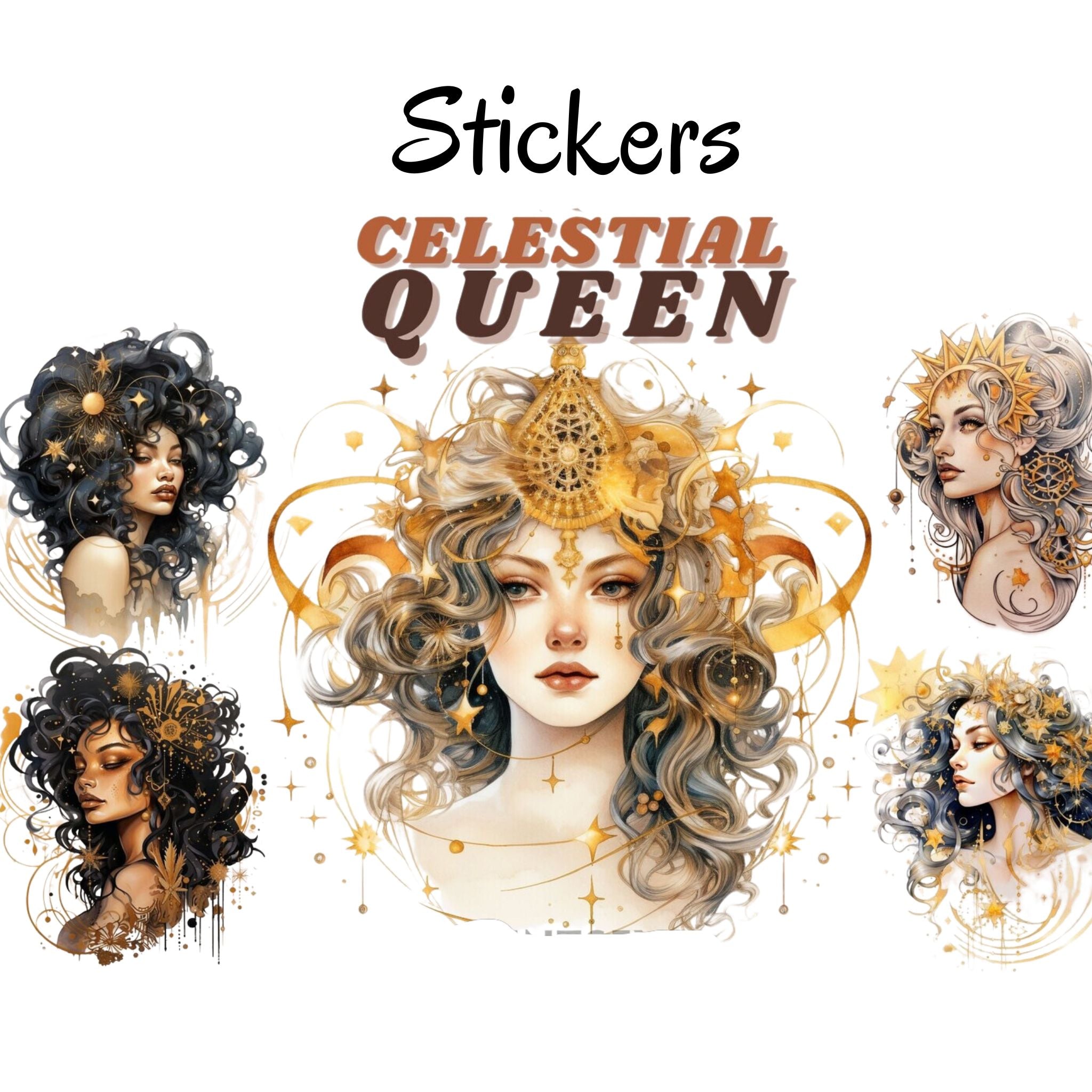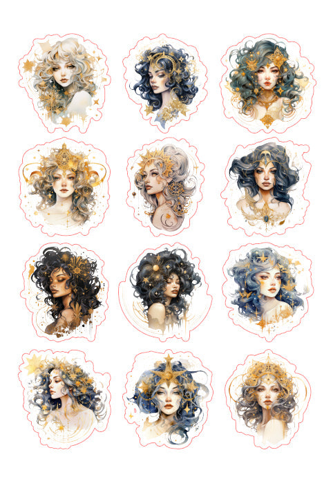 12pcs Celestial Queen Journaling Stickers