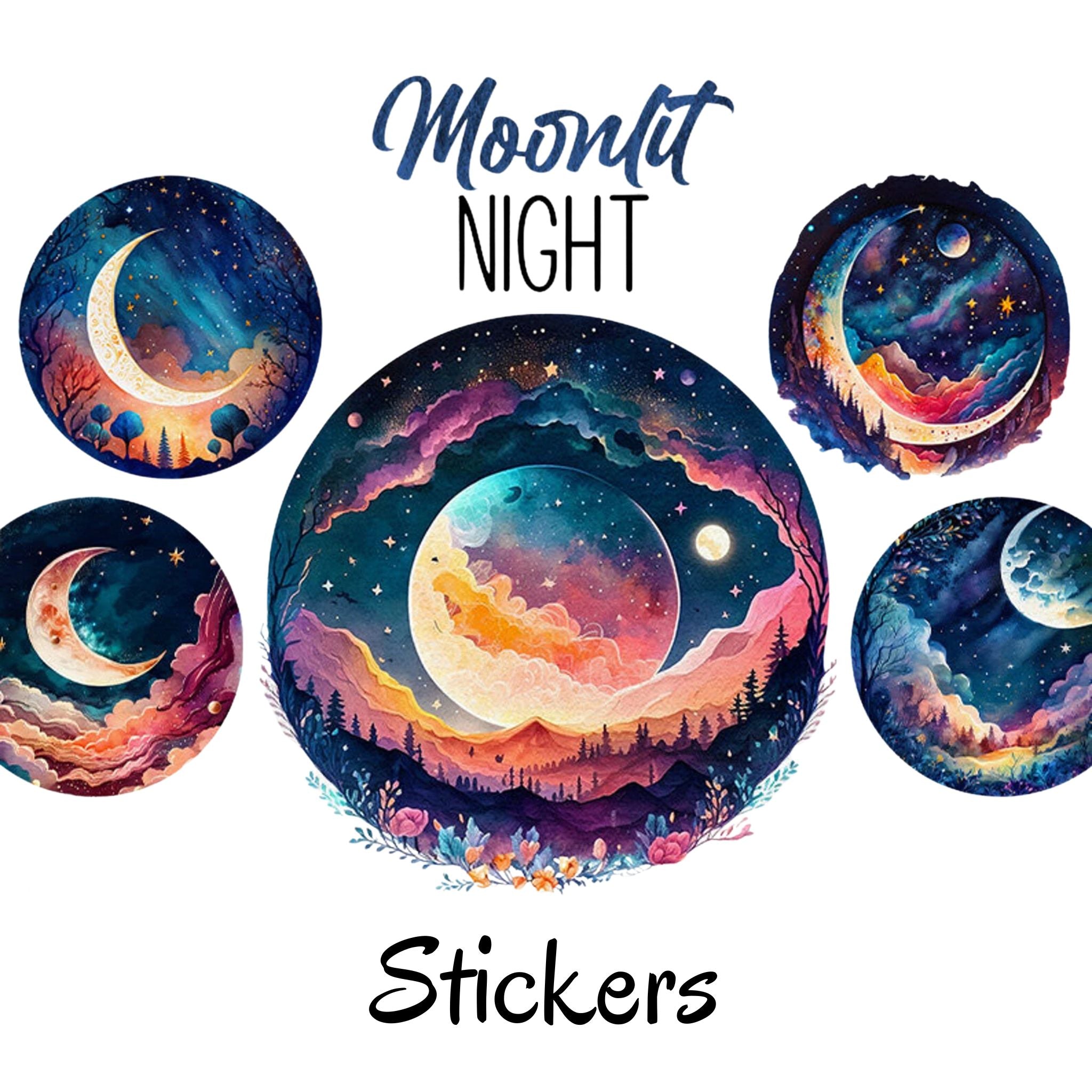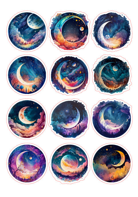 12pcs moonlit night Journaling Stickers
