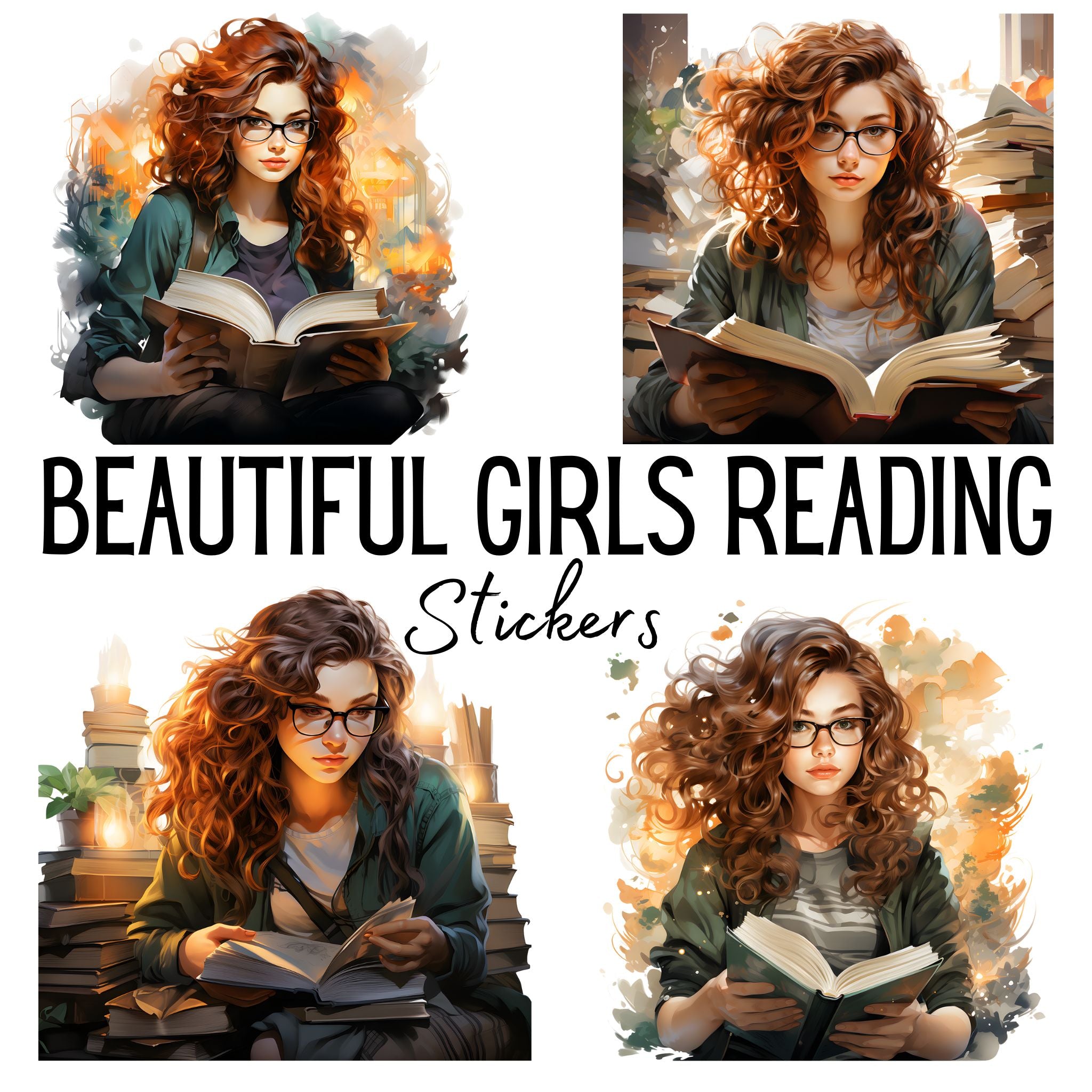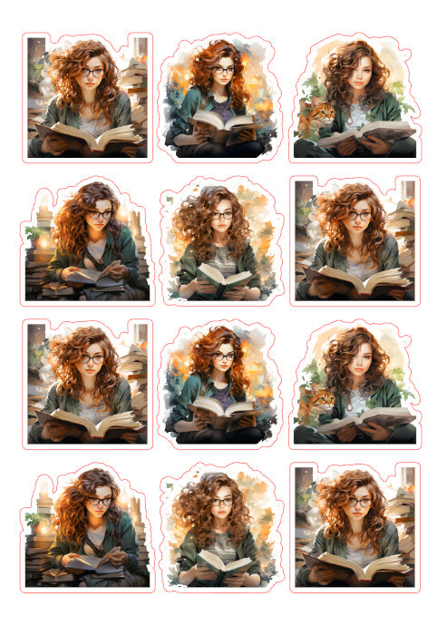 12pcs most beautiful girl reading Journaling Stickers