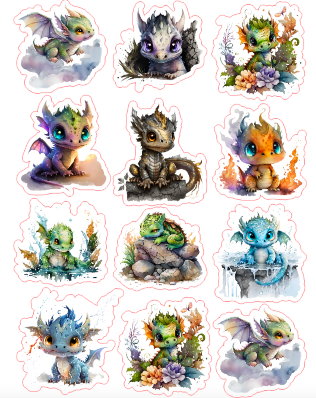 12pcs Baby Dragan Journaling Stickers
