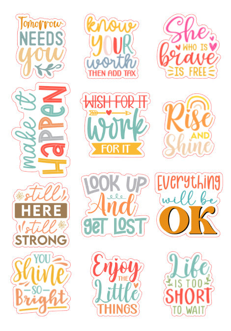 Qty – 12 pcs of Stickers | Made with premium glossy vinyl Stickers | Perfect size for Journaling